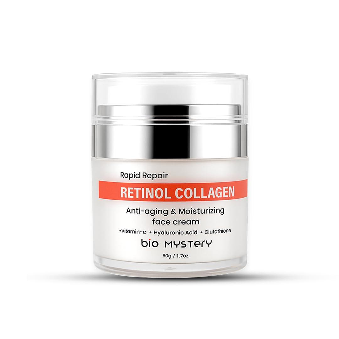 Unlock the secret to radiant, youthful skin with the Bio Mystery Retinol Collagen Cream, a luxurious, lightweight moisturizer designed to hydrate, rejuvenate, and repair your skin day and night. This powerful formula combines Collagen, Retinol, Hyaluronic Acid, Vitamin C, and Glutathione, working together to reduce the appearance of fine lines, wrinkles, and hyperpigmentation while improving skin texture and elasticity. Ideal for both day and night use, it nourishes deeply, leaving your face and neck feeling smooth, refreshed, and glowing.