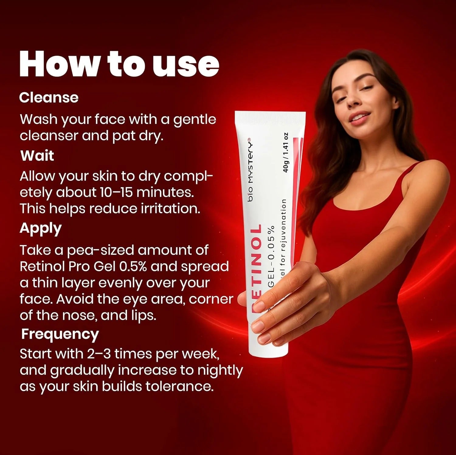 - Begin with alternate night usage to allow skin to adjust